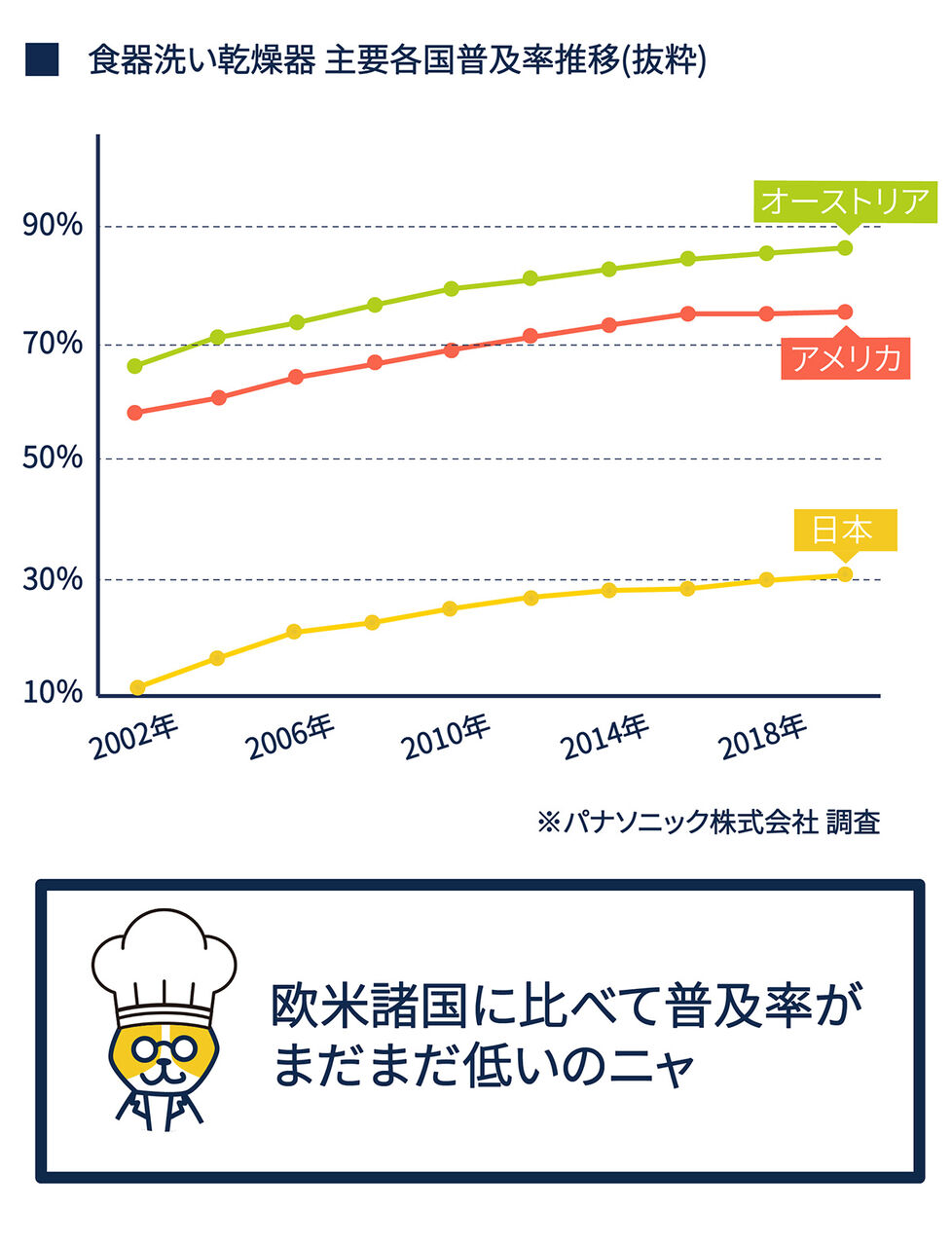 【悲報】日本、先進国でダントツ「食器洗い機」を使ってない国だった 2021年01月31日 カテゴリ:話題、雑談 1: 以下、5ちゃんねるからVIPがお送りします 2021/01/31(日) 21:04:45.183 ID:1jLgkuuW0 料理を作るのはまだいいけれど、食後にお皿を洗うのって、なんだか億劫ですごく面倒ですよね。 セバスチャンが勝手に洗ってくれたらいいのに!...って思うときありませんか? そんなときに便利なのが、自動で洗浄・すすぎ・乾燥までしてくれる「食器洗い乾燥機」です。 ただ、日本は欧米諸国と比べて、食器洗い乾燥機の普及率がまだまだ低いそうです。 そこで、今回は日本の食器洗い乾燥機事情をご紹介したいと思います。 実は、食器洗い乾燥機の日本での普及率は、30%前後にとどまっています。 グラフはかなり抜粋させていただきましたが、欧米諸国ではだいたい70%ぐらいの普及率です。 世界的にみると、食器洗い乾燥機で洗い物をするのは、もう当たり前の時代なのです。 https://www.senbokuhome.co.jp/labo/detail/138 元スレ: http://hebi.5ch.net/test/read.cgi/news4vip/1612094685/ 【【悲報】日本、先進国でダントツ「食器洗い機」を使ってない国だった】の続きを読む